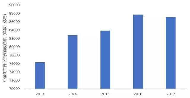 中國化工行業(yè)主要業(yè)務(wù)營收總額趨勢(數(shù)據(jù)來自中國統(tǒng)計(jì)局)