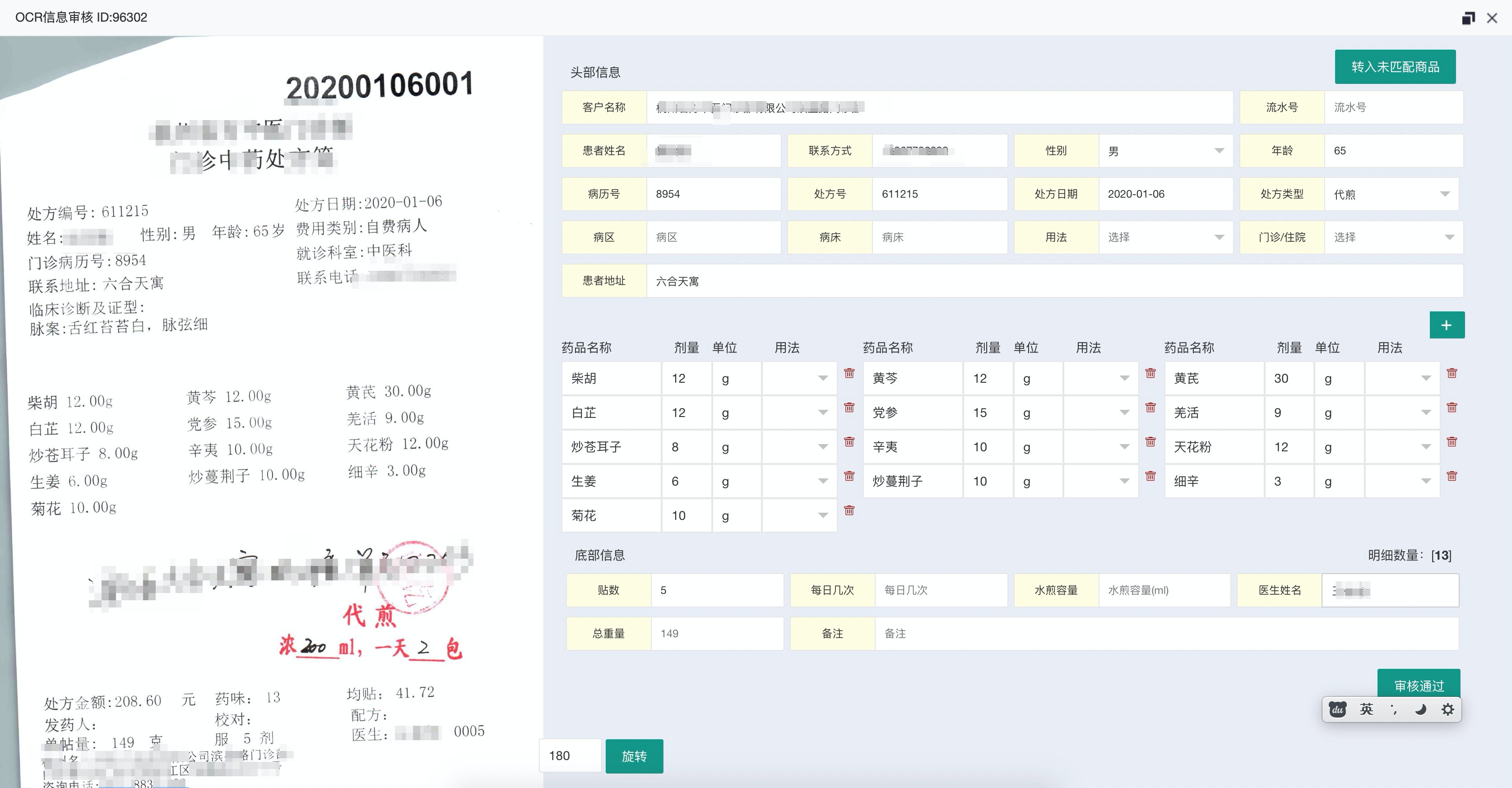 中藥代煎中心有大部分業務是需要通過傳真機來接收處方完成的,通常每天至少需要2~3人專門錄入處方,而這也造成了巨大的人工壓力,且錄入誤差率也較高。所以,佐力百草中藥公司希望能為存在此類問題的醫院找尋一種智能識別技術的解決方案,從而保證其業務的正常發展。