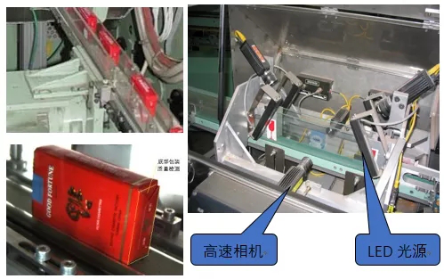 2成品煙質(zhì)量檢測分外觀(見圖7)與內(nèi)部質(zhì)量檢測(見圖8)。采用千眼狼高速攝像機5F10,核心參數(shù)1280×860@1000 fps,可實現(xiàn)800支/秒的檢測效率,用于可見污跡(雜物、粘膠、黃斑、油漬)、鋼印缺陷、褶皺等外觀缺陷。
